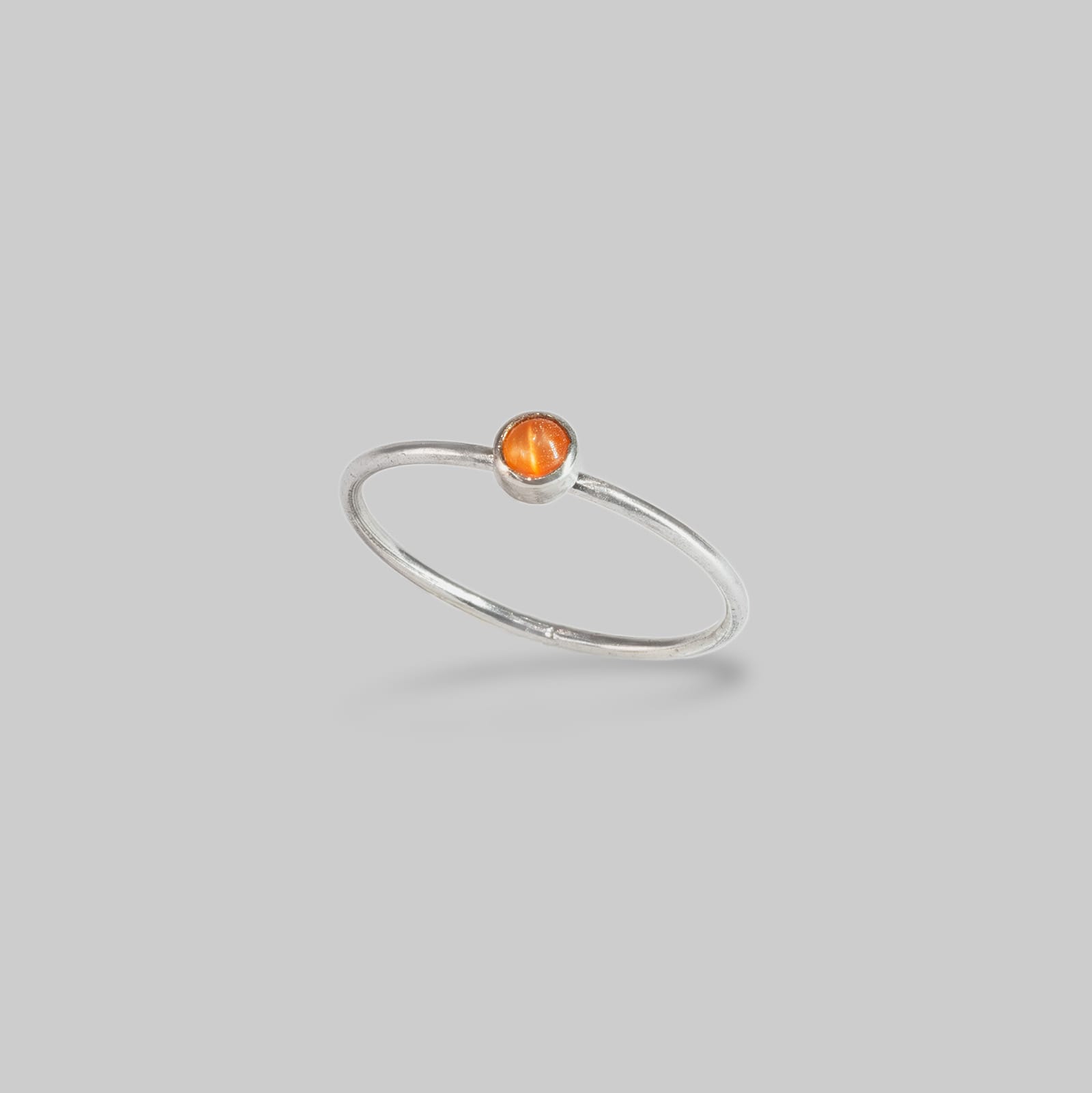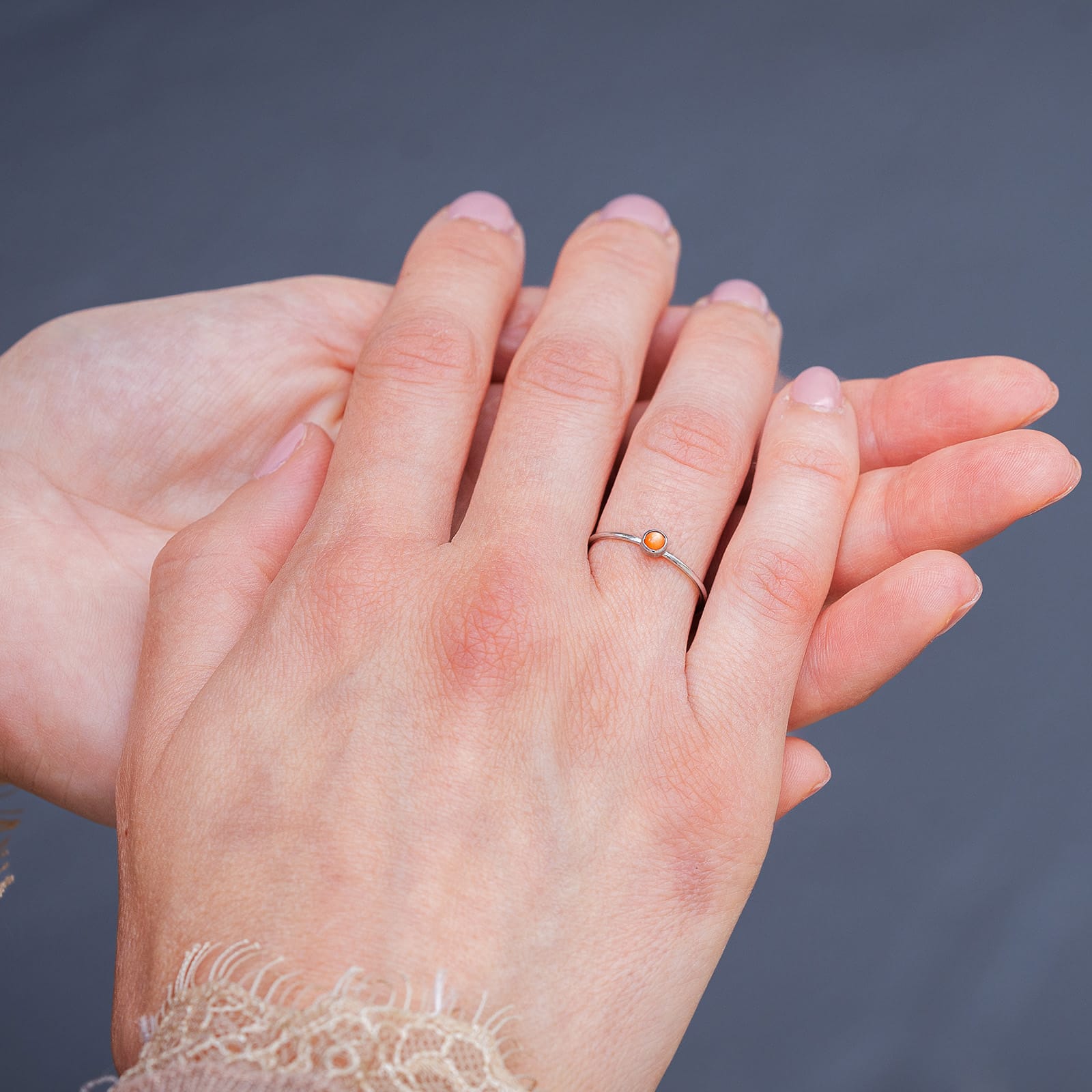 Χειροποίητο δαχτυλίδι από ασήμι 925 με πορτοκαλί φεγγαρόπετρα και επιμετάλλωση ροδίου. Λεπτό, διακριτικό και φωτεινό σαν σπίθα.