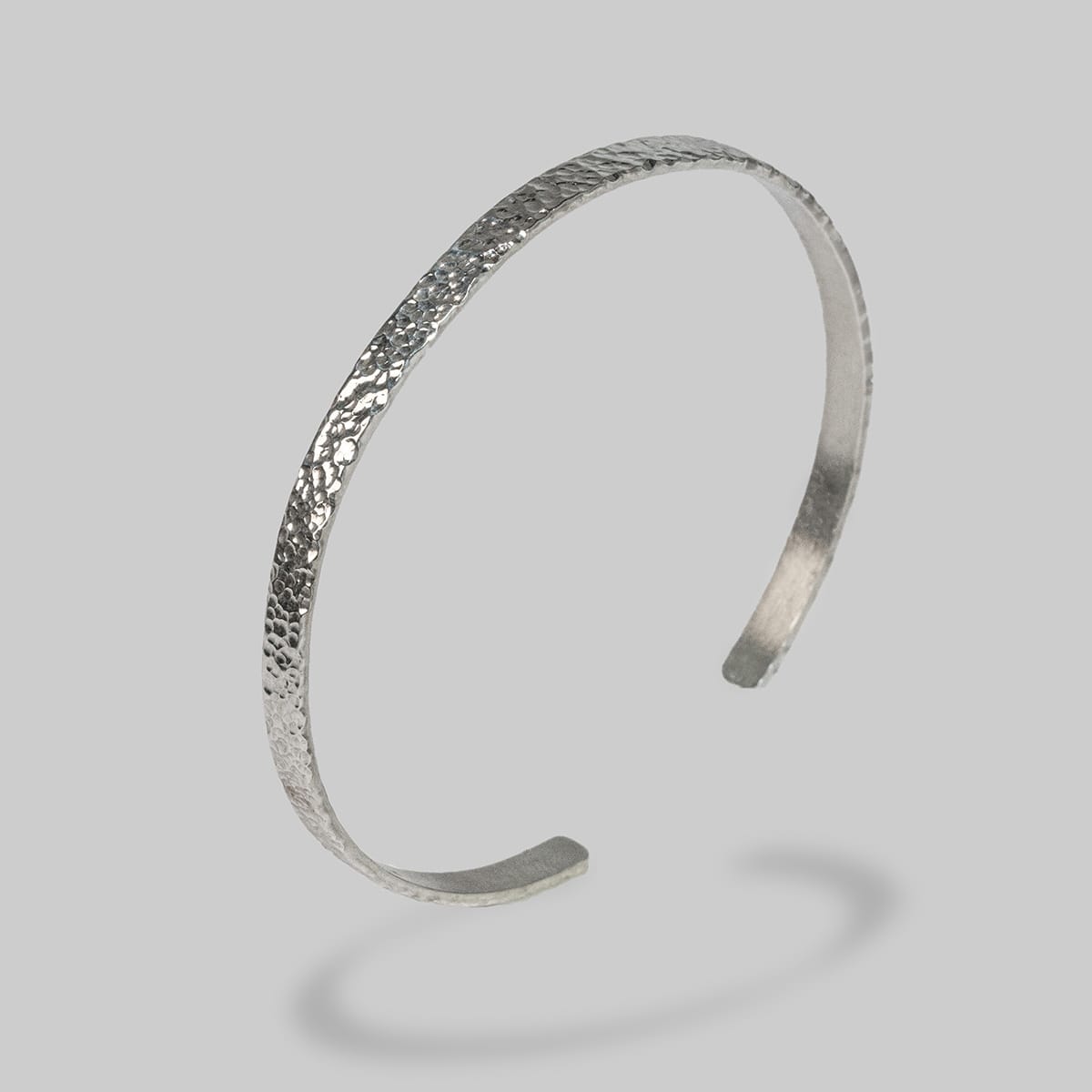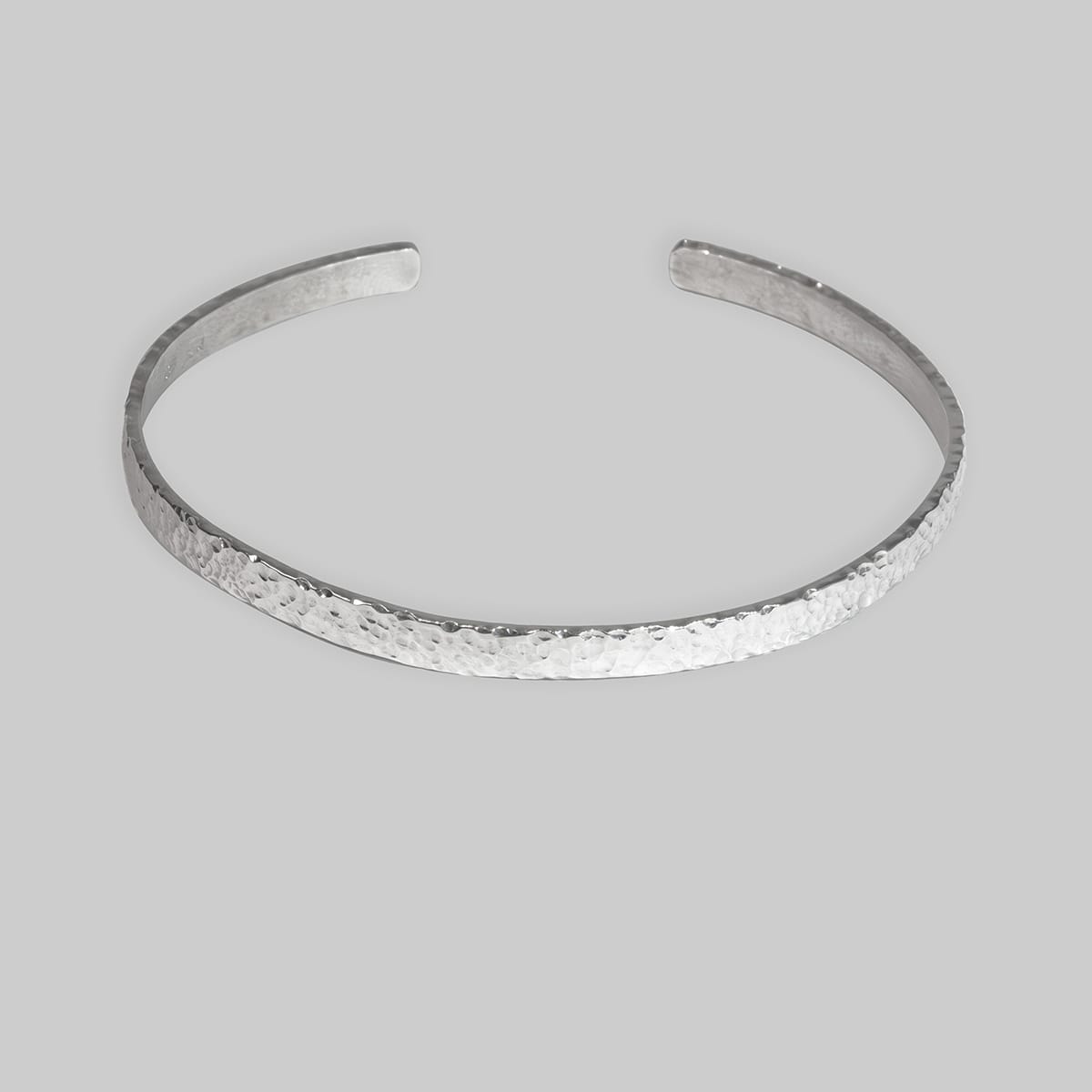 Χειροποίητο βραχιόλι από ασήμι 925 με σφυρήλατη υφή και επιμετάλλωση ροδίου. Δυναμική κομψότητα με άγρια φινέτσα.